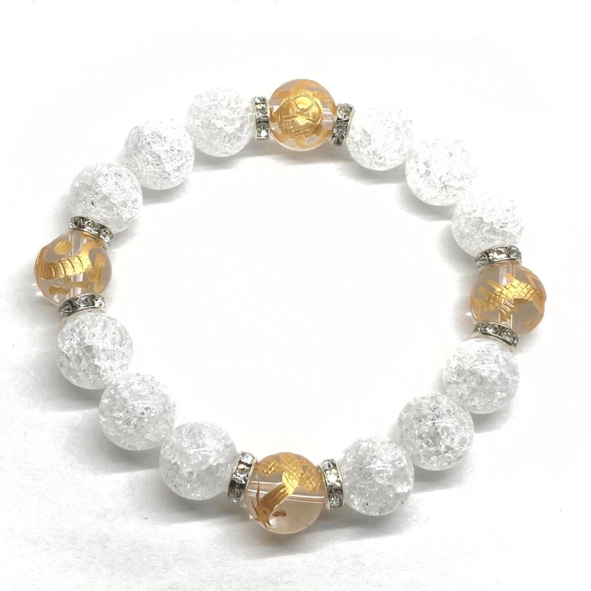 ご覧頂いているブレスレットは、四神獣金彫水晶とクラック水晶を組み合わせたブレスレット。守り神である四神とパワーストーンの組み合わせで運気の流れを引き寄せる強運ブレスレットです。シンプルなデザインで男女問わず、年齢問わずご使用頂けるデザインなっております。シンプルなデザインは日常のアクセントとして、仕事やビジネスカジュアル、パーティーや特別なイベントなど様々なシーン活用できます。また、ちょっと贈り物にも最適なブレスレットになっております。四神獣を身につけて厄災から身を守り、多くの運気を呼び込まれてください。