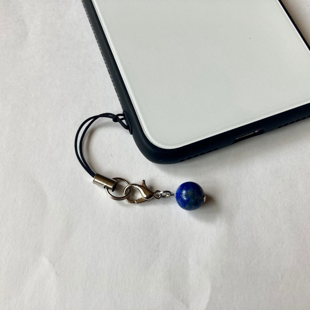 こちらは、8mm玉のラピスラズリを使用した一粒ストラップです。携帯電話にそのまま付けたり、ストラップから取り外しできるデザインに制作しておりますので、ストラップから外してお財布やポーチに付けたり、マスクチャームとも使えるデザインに仕上げています。気になる方は是非この機会にどうぞ。