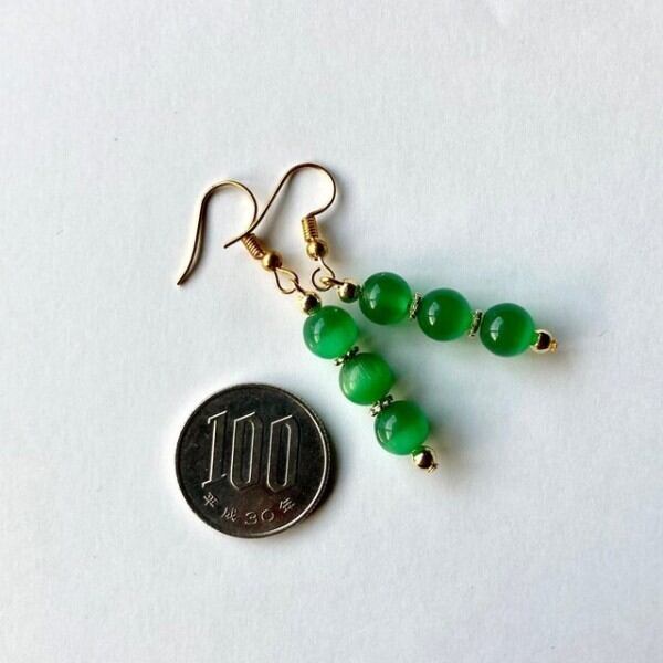 こちらは、8mm玉のキャッツアイを3個並べたフックピアスです。当ショップの中でも人気のあるキャッツアイは、女性の可愛らしさを引き立ててくれるピアスになっております。シンプルなデザインですのでコーディネートにも合わせやすいデザインで、使い勝手がいいアイテムとなっております。別売りのキャッツアイブレスレットと合わせても良さそうですね。気になる方は是非この機会にどうぞ。
