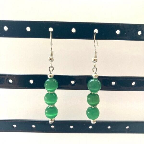 こちらは、8mm玉のキャッツアイを3個並べたフックピアスです。当ショップの中でも人気のあるキャッツアイは、女性の可愛らしさを引き立ててくれるピアスになっております。シンプルなデザインですのでコーディネートにも合わせやすいデザインで、使い勝手がいいアイテムとなっております。別売りのキャッツアイブレスレットと合わせても良さそうですね。気になる方は是非この機会にどうぞ。