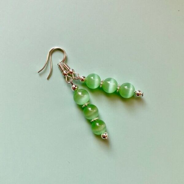 こちらは、8mm玉のキャッツアイを3個並べたフックピアスです。当ショップの中でも人気のあるキャッツアイは、女性の可愛らしさを引き立ててくれるピアスになっております。シンプルなデザインですのでコーディネートにも合わせやすいデザインで、使い勝手がいいアイテムとなっております。別売りのキャッツアイブレスレットと合わせても良さそうですね。気になる方は是非この機会にどうぞ。