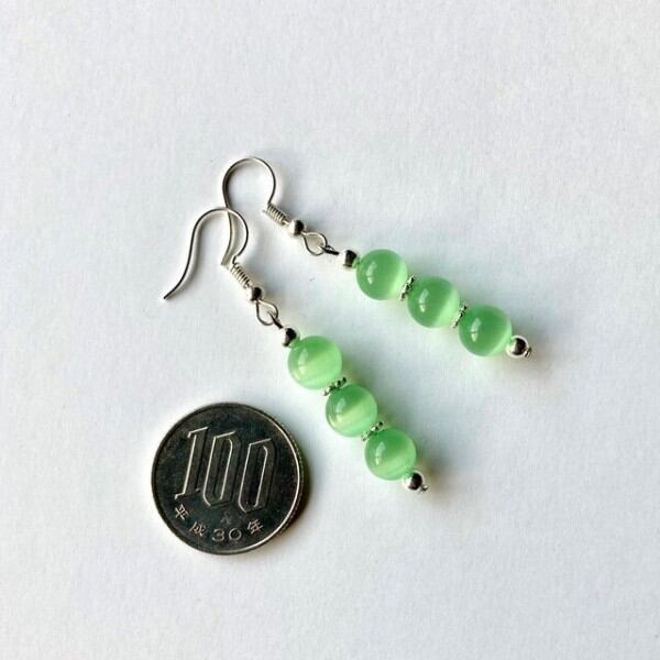 キャッツアイ (ライトグリーン) フックピアス 8mm (シルバー) イヤリング 樹脂ピアス パワーストーン