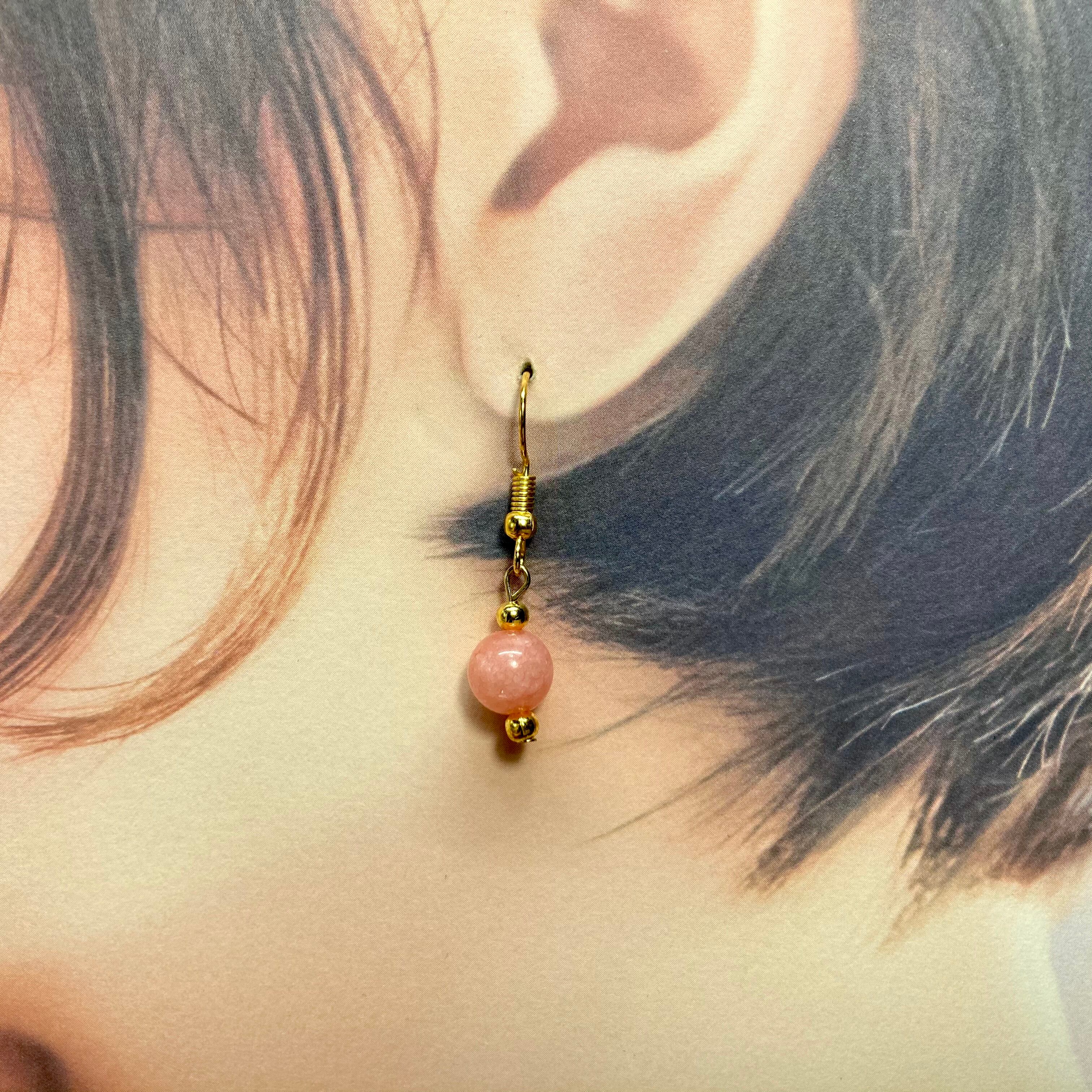 ジェイドピアス(ピンク) 一粒フックピアス 8mm (ゴールド) イヤリング 樹脂ピアス パワーストーン