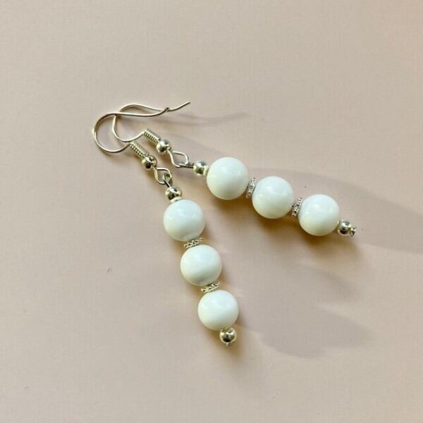 こちらは、8mm玉を使用したホワイトオニキスのフックピアスです。どんなコーディネートとも合わせやすい様にシンプルなデザインで制作。シンプルなデザインは飽きがこないのでシーズン問わず使える事間違い無しのアイテムです。上品な印象で耳元を華やかに飾ってくれるアイテムですので気になる方は是非この機会にどうぞ。