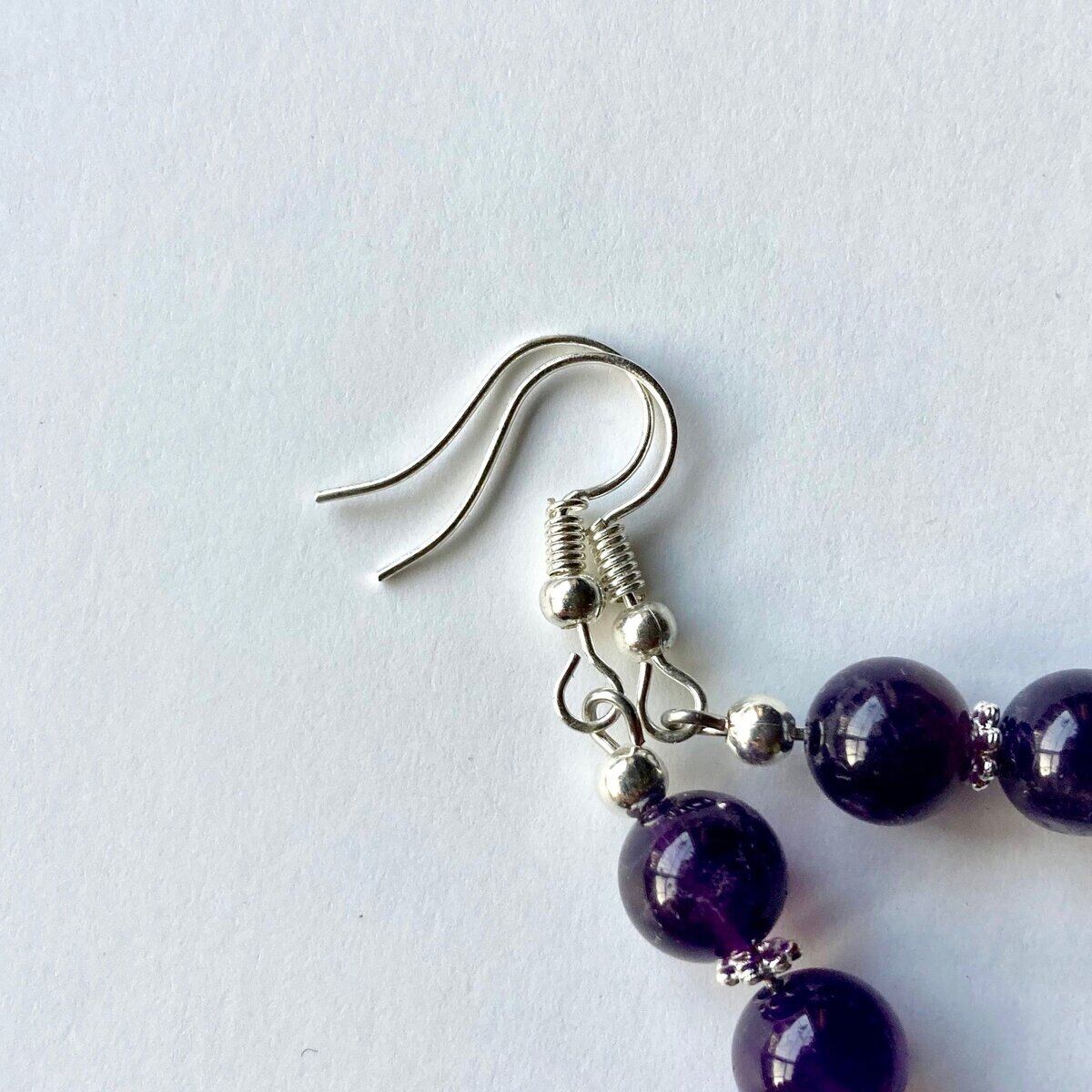 こちらは、8mm玉を使用したアメジストのフックピアスです。どんなコーディネートとも合わせやすい様にシンプルなデザインで制作。シンプルなデザインは飽きがこないのでシーズン問わず使える事間違い無しのアイテムです。上品な印象で耳元を華やかに飾ってくれるアイテムですので気になる方は是非この機会にどうぞ。