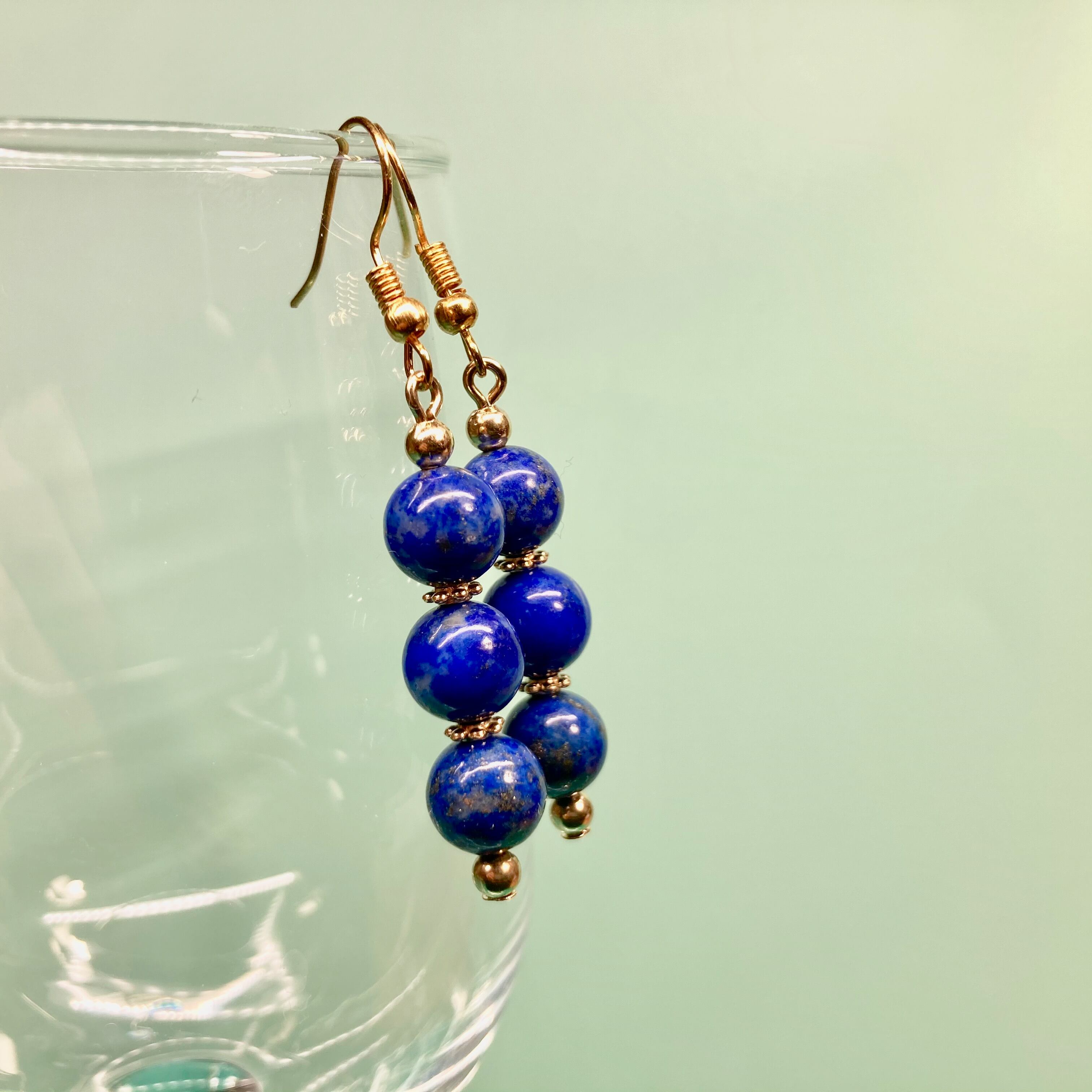 ラピスラズリ ピアス フックピアス パワーストーン 8mm イヤリング、樹脂フック変更可(ゴールド)